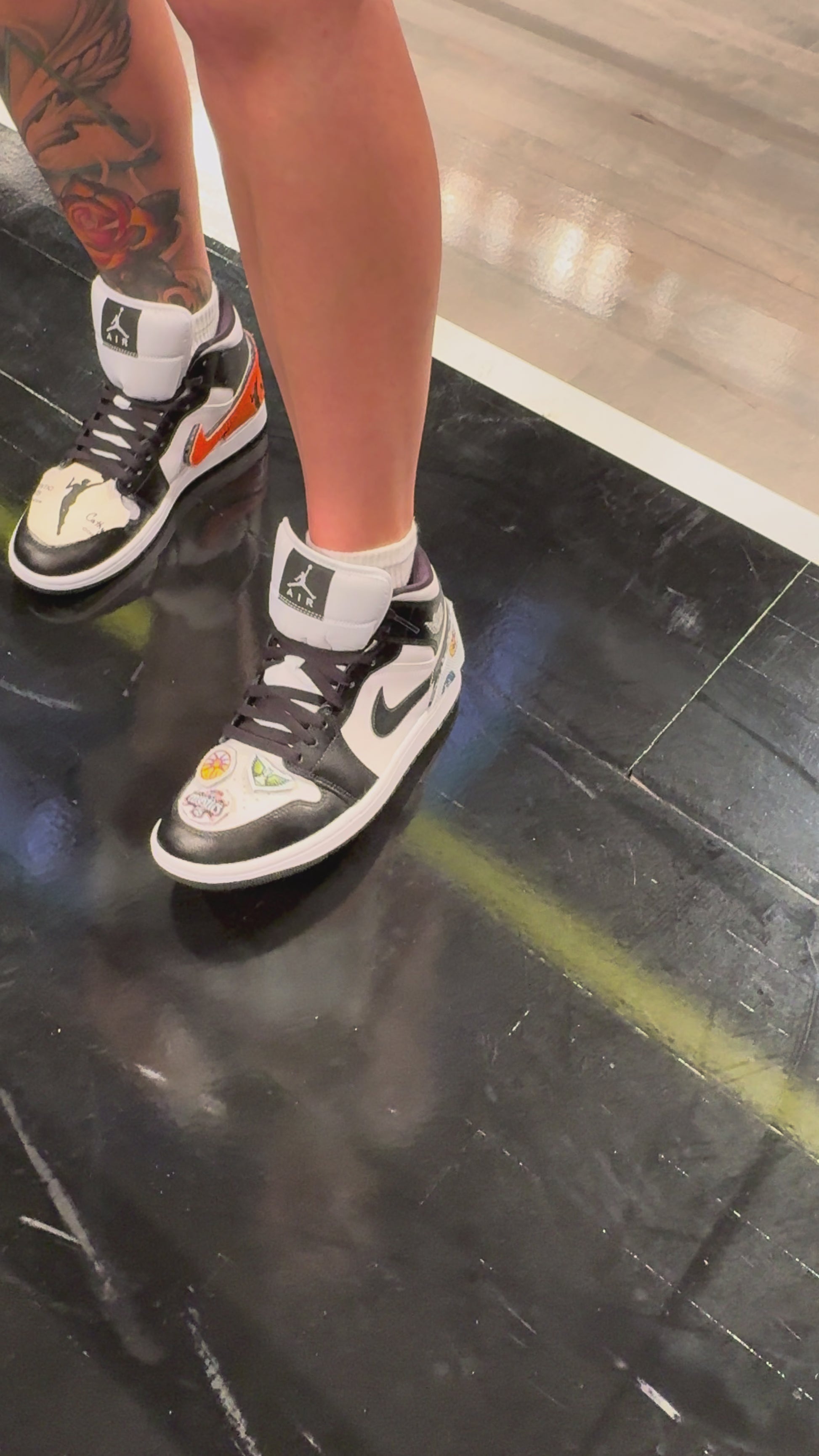 A handcrafted Air Jordan 1 custom by Drip by Fetch, built from the official Wilson WNBA All-Teams basketball, representing every franchise in the league. Cut, glued, and shaped by hand — this pair was made to celebrate the next generation stepping into the W.